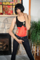 New model Alex is perfectly comfortable in front of the camera, in fact it turns this kinky tgirl on so much she shot a huge load of cum on the table.