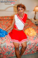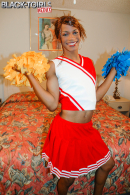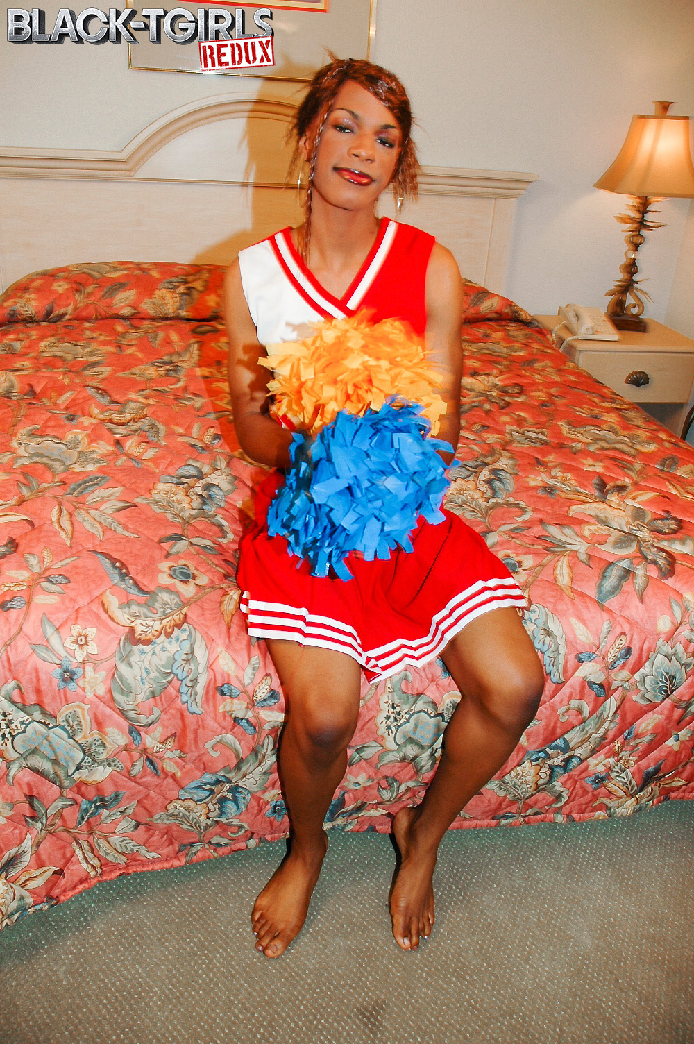 Give me an L, give me an A... beautiful transgirl La Trice is a naughty cheerleader who comes back to her room and takes off her uniform and strokes her hard uncut cock.