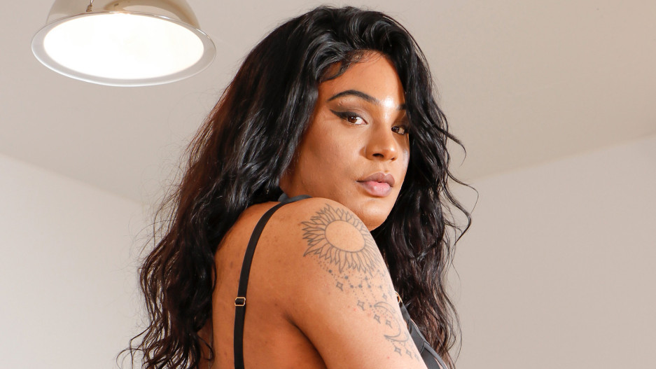 Vanity returning and in a sexy black bodystocking, that hugs her curves and shows off those big boobs, and butt. She's horny for sex, and really wanting to get fucked so she displays her postérieur...