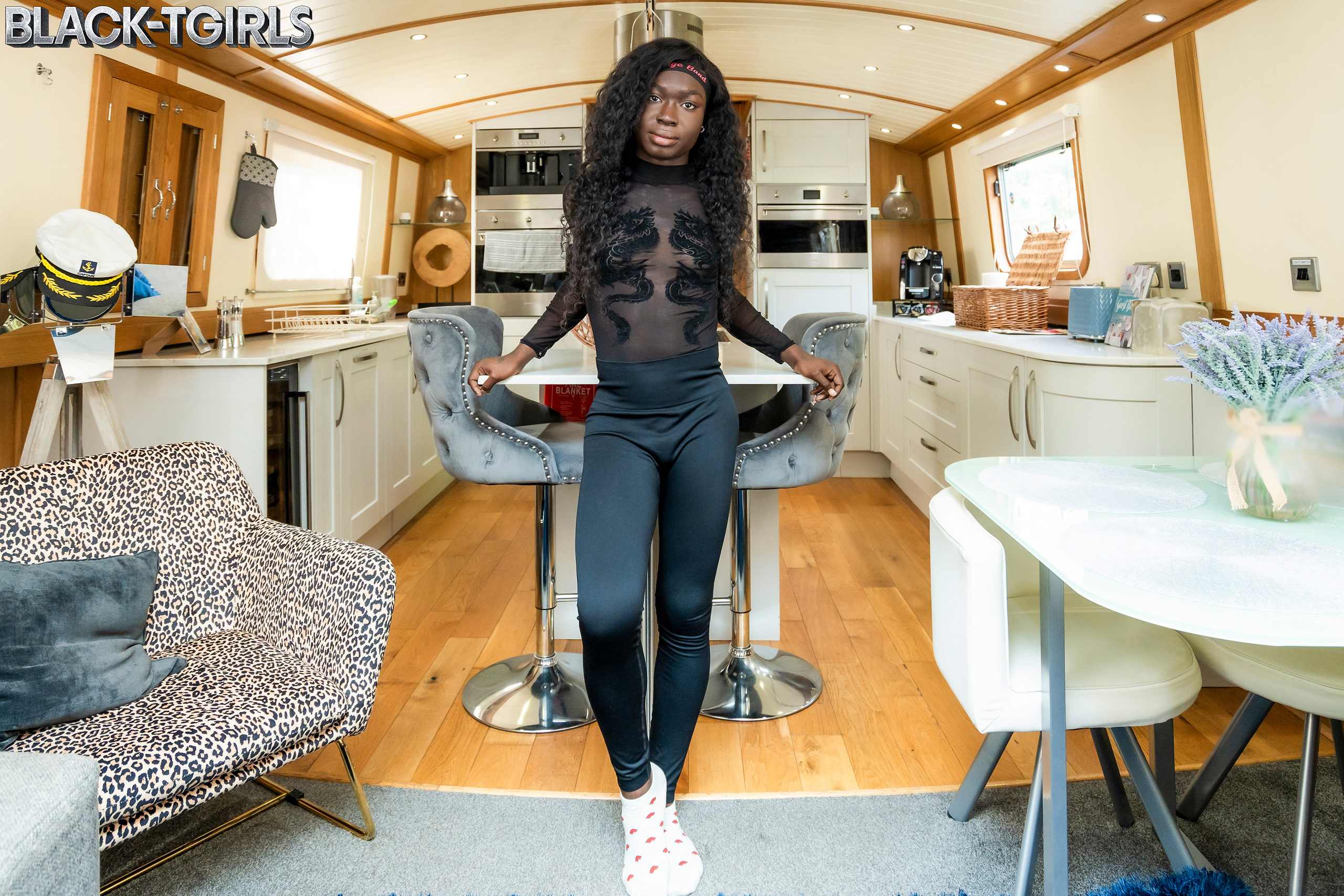 It sounds like the start of a tongue twister and indeed with this gorgeous girl, we'd be privileged to be able to twist our tongue around those beautiful big lips, playing with her tongue, then lowering our heads to lick and suck those tight nipples on those tight budding breasts. But Blackbarbi is on a houseboat, which is where Kalin filmed her. Back to our tongue, and how we'd like to twist it, because when Blackbarbi gets her clothes off we've too many options. Those muscular legs, those amazing hips, that killer ass with the dark, puckered smooth hole is begging for a tongue, or take your time and slowly take her cock into your mouth, running around her head and then licking up and down the shaft, feeling her shudder and hearing her moan.