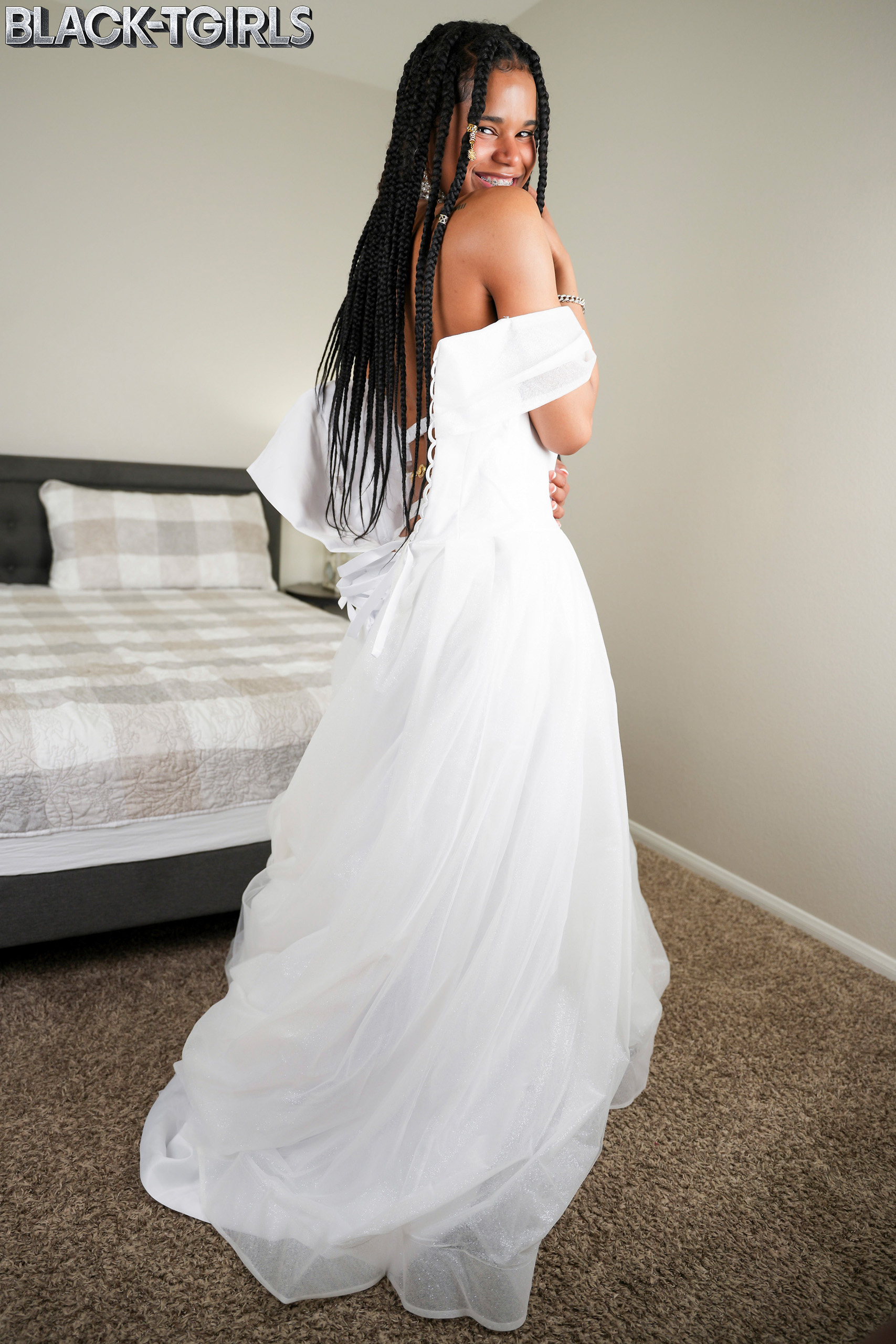 It's only hours before the wedding and the photographer has asked to take some of Cloudy getting dressed for the wedding album. Cloudy is in her lingerie as she starts dressing for the big event, pulling on her white dress, and posing for the camera. "Do you like what you see?" she asks somewhat innocently "Can you do some for my private collection?" she continues, and spreads her legs, letting her hard cock poke out, and showing off her awesome body, spreading her cheeks wide, her sweet hole ready for the wedding night. She slides her number over to the photographer... call me in a few weeks and we can do it again, my soon-to-be husband is always at work, and I can get so bored at home.