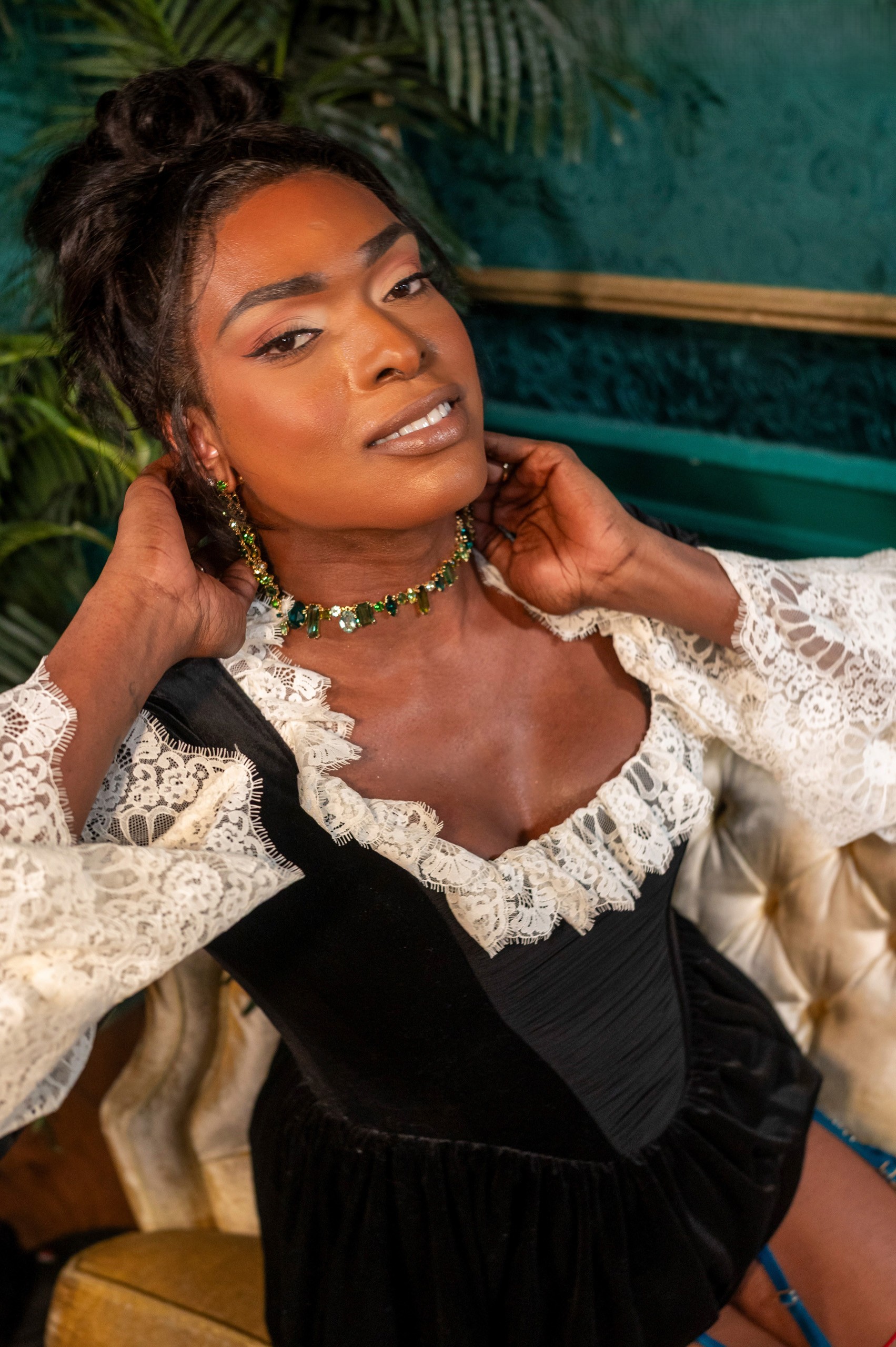 It's not gone unnoticed that despite us filming both solo sets back-to-back, Jazzi changed her makeup to match the scene. Her red lipstick matches her bra and her shoes, and with the rest of the outfit...