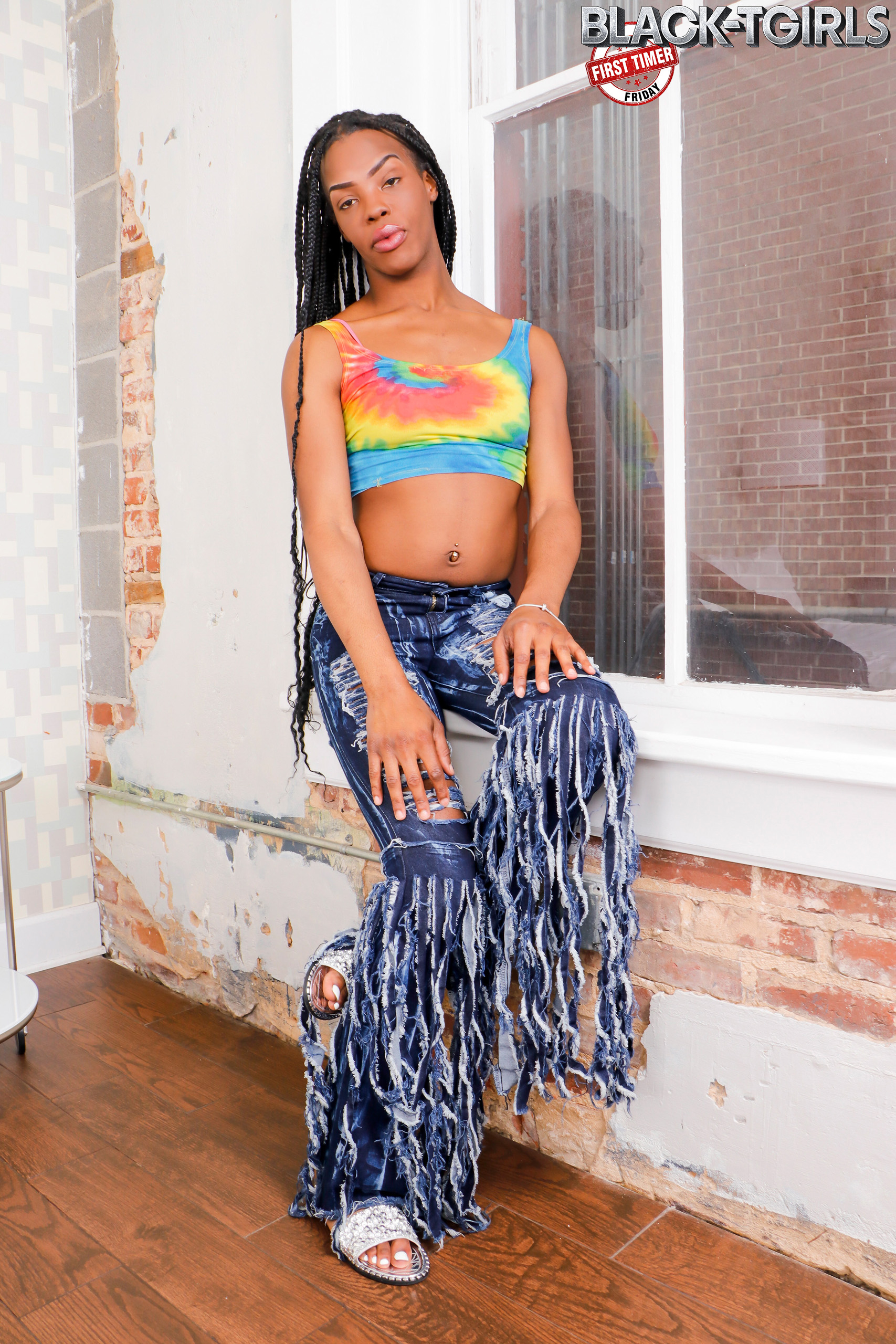 I love to debut a girl like this. When her sets came in, I said to Omar, 'there is a girl who will not only have a great debut, but could feature in the coming years'. Models come, some stay longer, and then they move on... so we need to keep filling their spaces, and when new talent like Brat comes along, then we fulfill our agenda to show the very best black trans girls. She's a tall 25 year old from Georgia. A lovely body on her, with nubile boobs, and dark nipples upturned and suckable. Her body is lean and toned, smooth pretty skin, long braids really look fantastic on her, and a perfect smooth cock and balls to cap it off. Oh, and I didn't mention that smile yet? That smile... well look at the photos and it says it all.