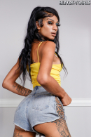 Shar'Daysha has a super toned body. Muscular and fit, when she stands up with those big boobs sticking straight out, and that big, curved cock it's quite the picture. She loves all sex, loves sucking on a big cock, loves getting her ass eaten, is a expert at pounding some tight hole, and adores taking cock herself. She's up for it all, and the more she plays with herself, knowing how many people are watching, the hornier she gets. Watch out for a nice sticky explosion at the end of this shoot.
